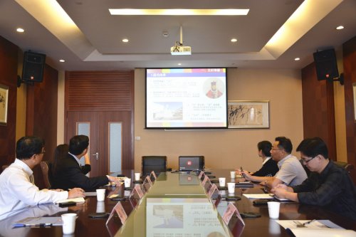 随后,双方来到学生活动中心204室进行会谈。吴昌政和詹乾隆分别介绍了各自学院的情况和特色,并就今后师生互访及其它项目的推广进行了深入探讨,表达了两院进一步开展合作交流的真诚期望。
