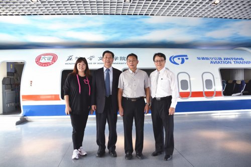 吴昌政陪同来宾参观了学生活动中心、教学楼、图书馆和艺术楼。代表团对设计新颖的图书馆、设备先进的教学设施、整洁优美的校园环境和浓郁和谐的校园文化给予了高度评价。期间,来宾还体验了我院空乘专业茶艺表演现场教学环节。