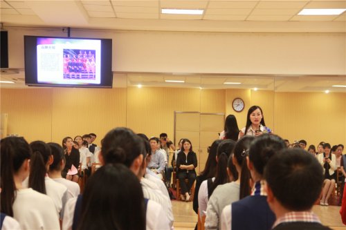 12级空乘专业学生陆方、朱婷婷作为老生代表发言,13级空乘专业学生曹伊莎、叶佳俊、周昊天分享了自己在北戴河参加面试的经验。他们衷心希望在座的新生能够丰富自己的课余生活,拥有良好的心态,充分利用学院给予的广阔平台。杭晨曦代表2015级空乘专业新生发言,她表示立志勤奋好学,积极进取,努力为将来立足于职业,奉献于社会打下扎实的基础。