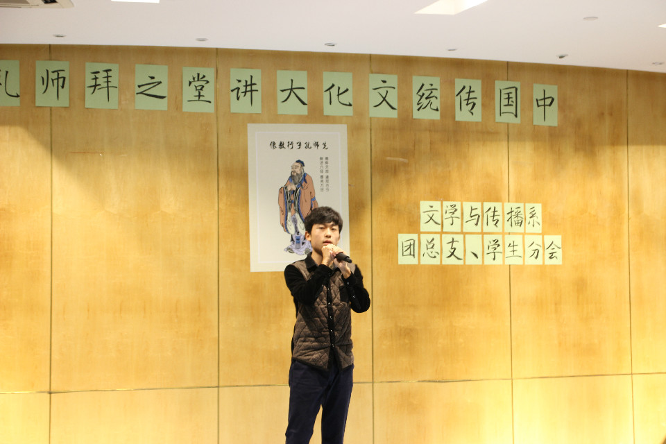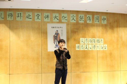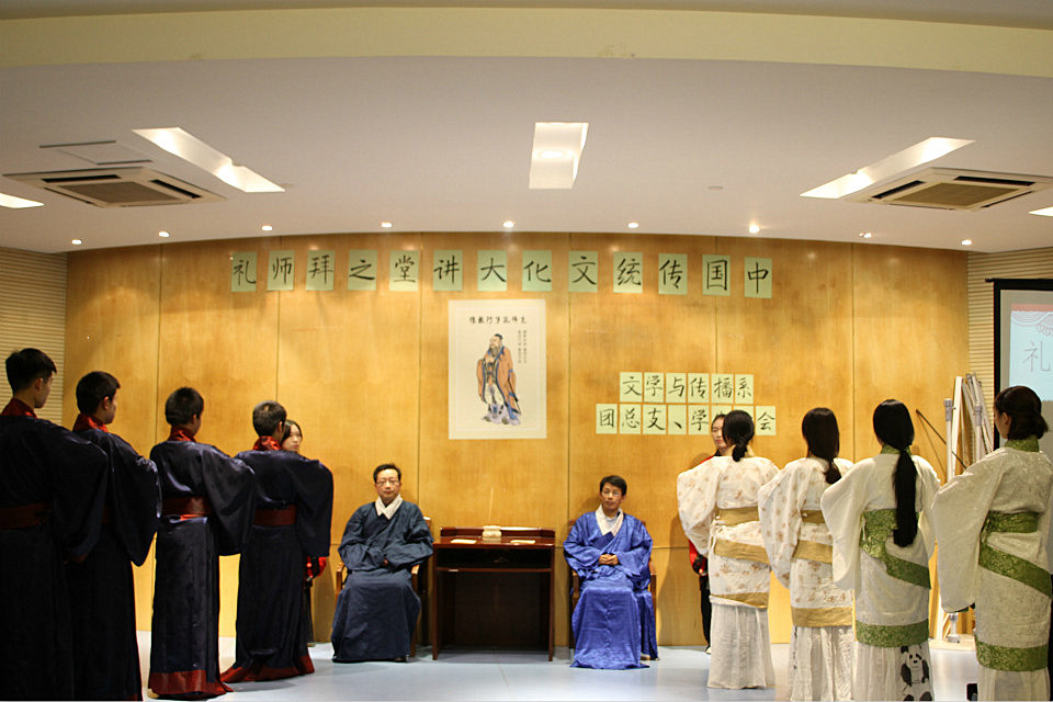 (翠文报记者:赵嘉芝杨袁晓/文杨依婷/图)11月4日下午6时30分,由我院文学与传播系团总支、学生分会主办的“相伴国学经典,传承中华文明”之拜师礼活动在学生活动中心201举行。此次活动特邀苏州大学文学院王建军教授以及苏州大学凤凰传媒学院曾一果教授担任拜师礼中“老师”的角色。我院学生工作处副处长祁素萍、文学与传播系指导老师田克迪出席了此次活动。