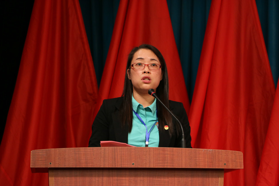 总监票人姜婷宣布大会选举结果,在场同学以热烈的掌声对新当选的委员们予以祝贺。