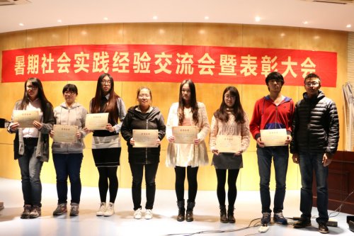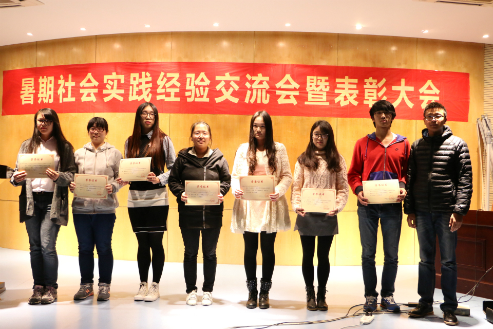 (夏千涵/文张华城/图)11月11日下午5:30,由院团委社会实践部主办的2015年暑期社会实践经验交流会暨表彰大会在学生活动中心201室举行。学生工作处副处长、团委书记祁素萍、团委副书记何玉、团学指导老师郭浩受邀出席大会。1-3年级各班团支书、暑期社会实践相关团队负责人及十二系团总支、学生分会科技实践部代表共153人参加了经验交流会。