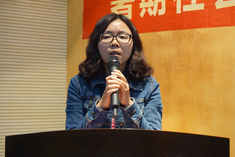 作为院级先进个人代表团队负责人王芳和杜梦程向大家分享了她们在社会实践中的经验与个人心得。“爱·黔行”贵州支教团队的队长杜梦飞作为院级优秀小分队的代表呼吁大家多多关注偏远地区和留守儿童,为教育事业贡献爱心。