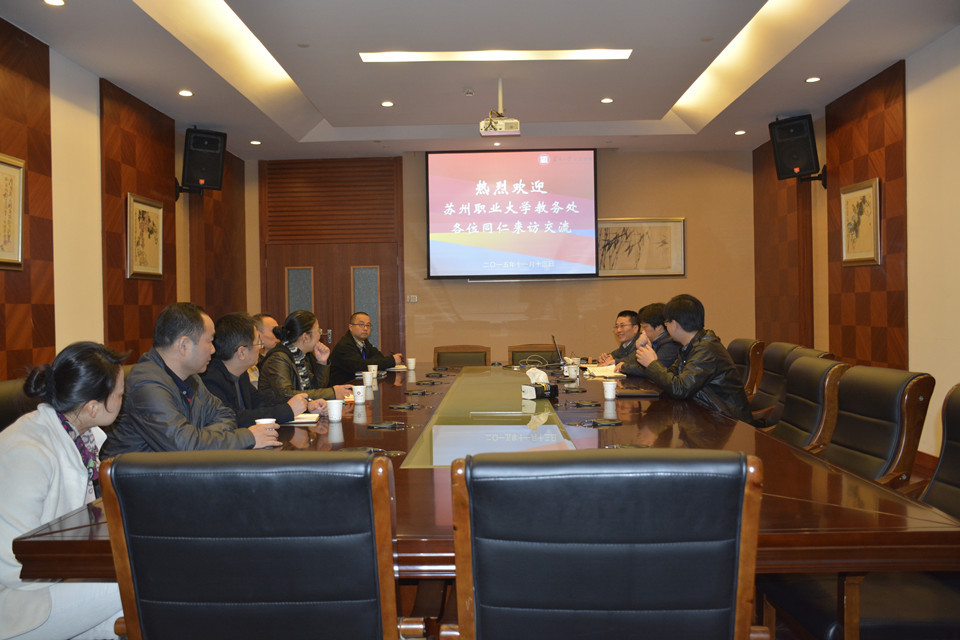 11月13日,苏州职业大学教务处处长傅小芳一行7人来我院,就教务管理信息系统、完全学分制的实行等方面与我院相关老师进行交流。我院教务处处长胡荣、副处长张毅驰、副处长邵春妹等老师参加交流会。会议由胡荣主持。