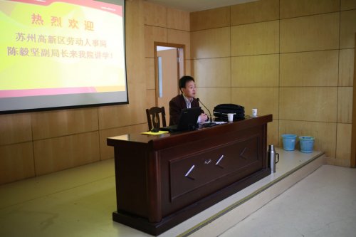 (施馨怡/文)11月10日下午2时,由就业处主办的“苏州高新区科技产业结构及人才需求状况”就业论坛在我院活动中心106举行。活动邀请苏州市高新区人力资源和社会保障局副局长陈毅坚作为主讲人,本次论坛是2015年就业活动月系列活动之一,旨在促进毕业生了解苏州高新区的产业结构及人才需求状况,更有效地服务于毕业生求职。就业处处长王淼出席并主持论坛。