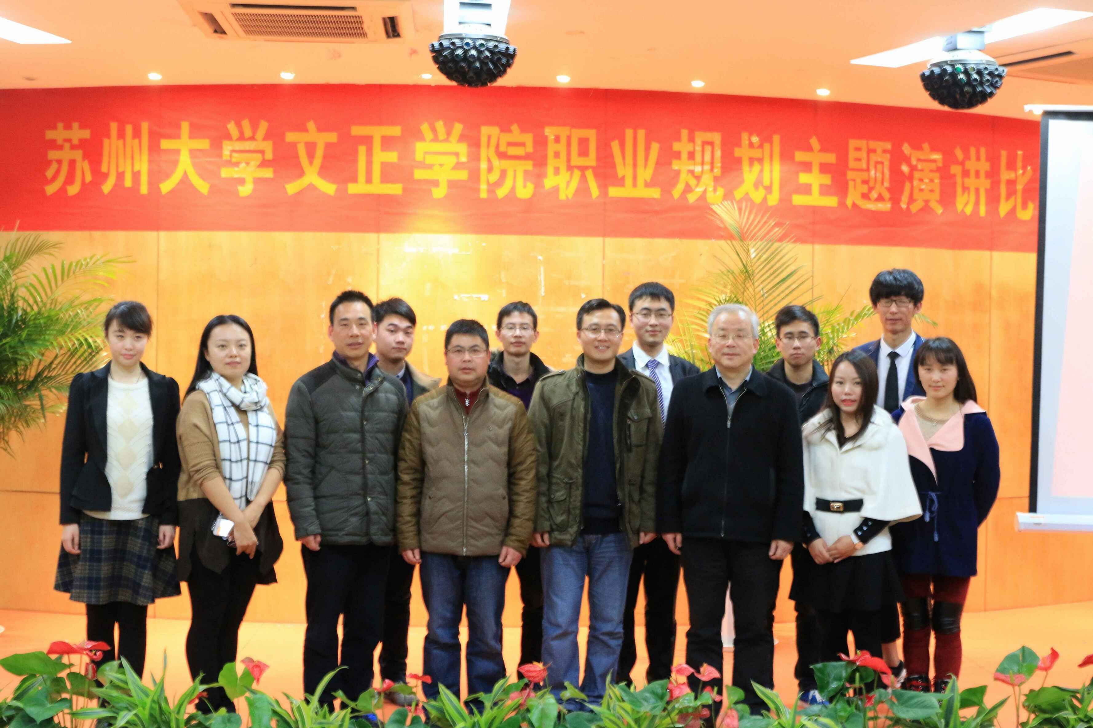(翠文报记者:杨袁晓、李庆亚/文 谢晴、杨熠/图)12月23日下午4:00,由学生工作处和就业处共同举办的苏州大学文正学院职业规划主题演讲比赛决赛在学生活动中心202拉开帷幕。我院学生工作处处长卞海勇、招生处处长周文军、就业处处长王淼、创新创业专项负责人赵小和以及空乘专业教师熊莹应邀担任本次比赛的评委。