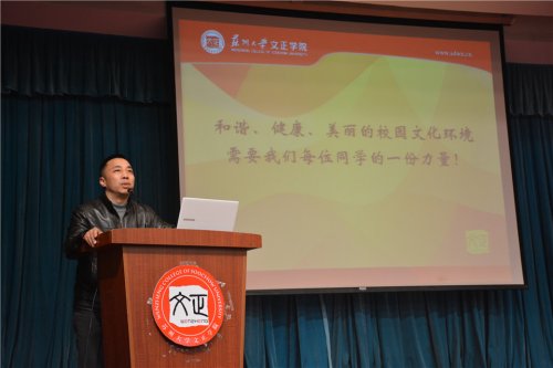 魏秋江提出“学生干部在校园危机事件中的角色和作用”,他先回顾了我院心理危机事件的状况,强调了学生心理健康的重要性,对学生干部在校园危机预防、发生、处理扮演的角色做详细的解读。