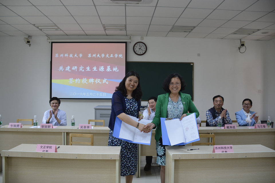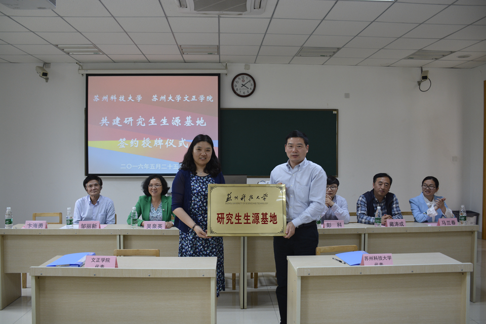 朱明珠代表苏州科技大学为共建研究生生源基地揭牌。