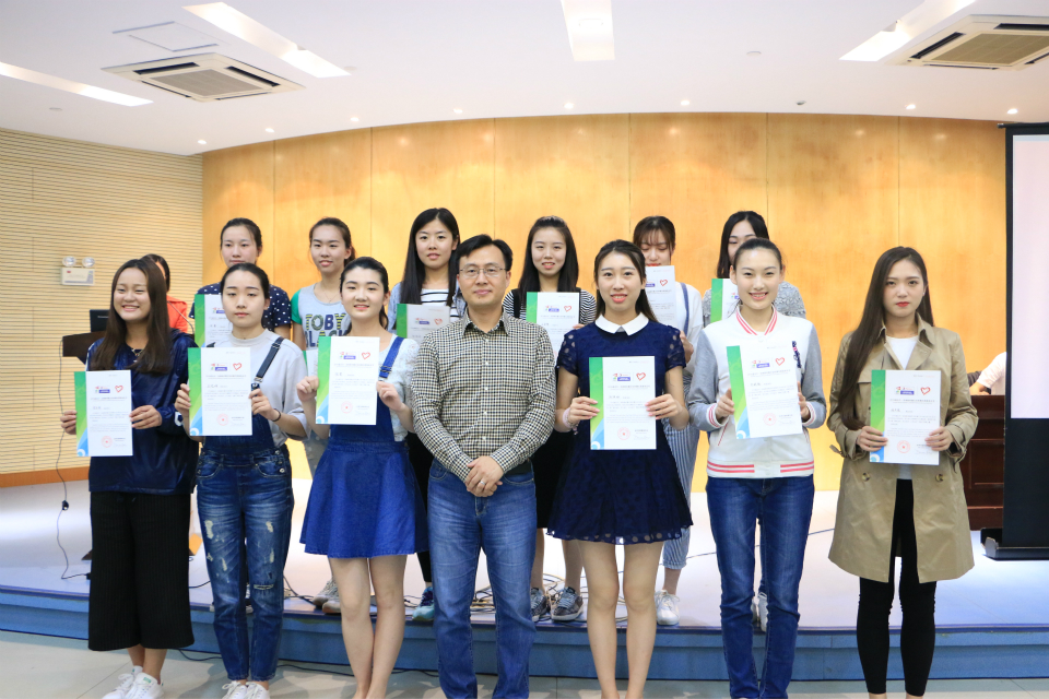 卞海勇为32名志愿者颁发志愿服务证书。为了嘉奖其中表现突出的同学,我院共评选出5名院长特别奖获得者,袁昌兵为二等奖获得者李崤頔、曹伊莎和三等奖获得者姬予欣、王安慧、何蕾颁奖。