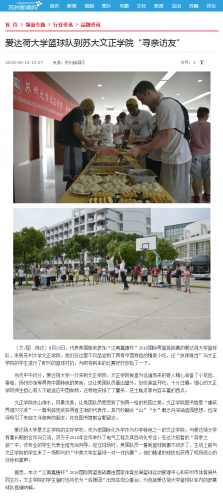 据悉,本次“江南嘉捷杯”2016国际男篮挑战赛由国家体育总局篮球运动管理中心和苏州市体育局共同主办。文正学院的学生届时也将作为“后援团”出现在观众看台,为包括爱达荷大学篮球队在内的参赛球队摇旗呐喊。