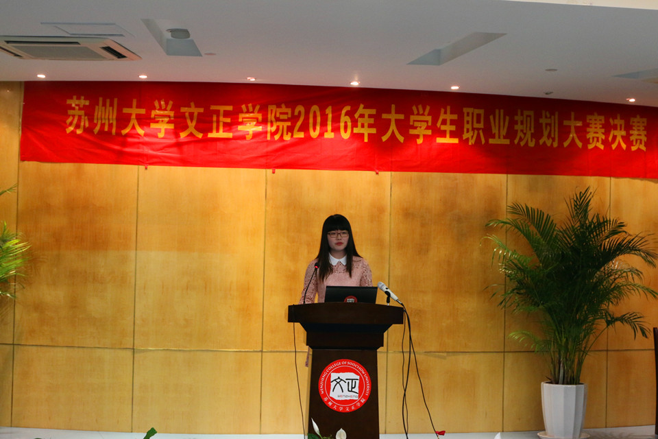 6月22日晚上6:30,我院2016年大学生职业规划大赛决赛在学生活动中心201顺利举行。经过前期的报名、提交书面作品和初赛环节,来自2014级汉语国际教育的湛谌等10位选手成功入围决赛。苏州经贸就业与创业中心主任、高级职业指导师蒋建强、苏州市职业大学学生工作处副处长、国家生涯规划师张国良、我院就业处处长王淼和就业处虞萍老师担任本次大赛的评委。
