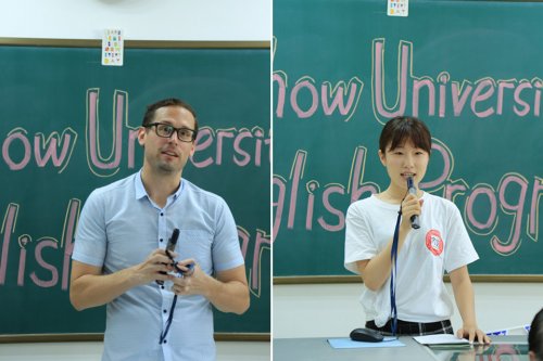 教师代表Jarrod发言。他感谢同学们利用暑假、冒着酷暑、充实自己的选择,希望大家能不畏难,不害羞,勇于展现自己,增强英语交流的自信心和实战能力。