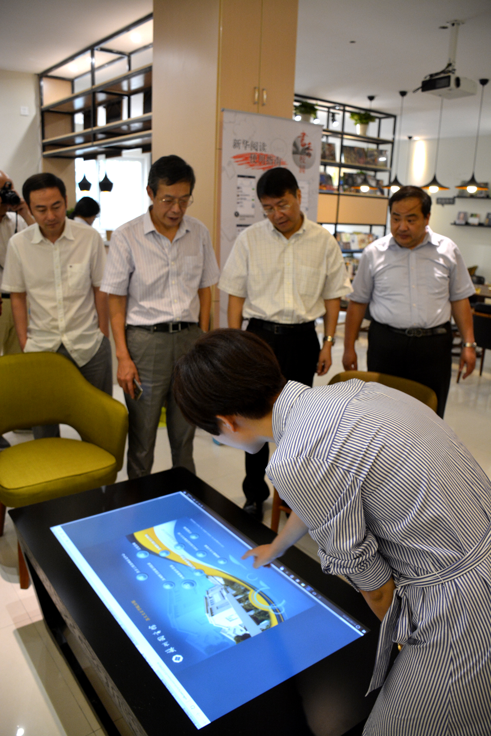 装修一新的文正分馆清新优雅、书香阵阵,大家边听取分馆工作人员介绍,边饶有兴趣地在借阅一体机上亲身体验“互联网+”时代图书借阅和归还的便捷。大家纷纷掏出手机下载书香苏州APP,足不出户即可享受可以在指尖上翻动的图书馆。师生们还可通过手机扫描二维码,选择心仪的电子图书,把图书馆的电子书“借”到手机上带走,随时随地阅读。同时,除了提供大量实体书,分馆还配备了触屏桌面电脑等高科技产品,读者只要用手指轻轻触碰显示屏上的图片,就能实现对海量图书资源数据库的访问。