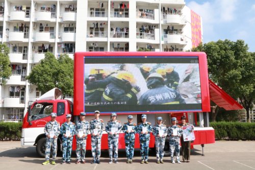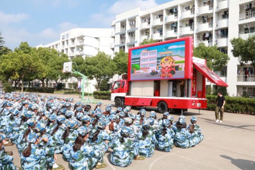上午9点,吴中区消防大队的宣传车来到我院篮球场。在教官的组织下,新生在篮球场指定位置有序就坐。由吴中区消防大队带来的消防视频,内容主要围绕消防案例以及紧急逃生方法展开,极具感染力。在观看视频的过程中,大家都保持了认真投入,全神贯注。