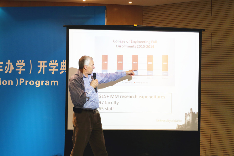 两位外宾分别介绍了爱达荷大学的概况和该校电气工程专业的内容与特色,特别是校园环境、教学设备、生活设施、专业特色及实习情况等作了详细说明。