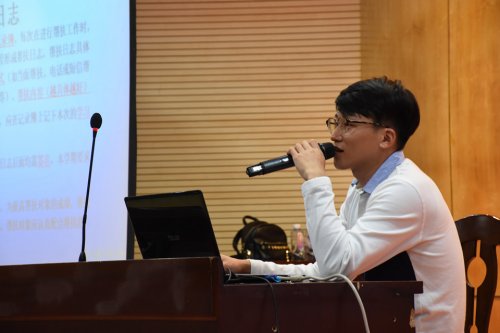 大会伊始,院学生会学习部指导老师冯超上台讲话。他对帮扶工作作了明确介绍,特别是帮扶流程、帮扶日志、帮扶考核等方面作了具体说明。同时,指出帮扶者也深入分析被帮扶者成绩落后的原因,制定个性化帮扶措施,做到真帮、实帮。被帮扶者要认真总结、反思成绩落后的原因,制定适合自己学习计划。帮扶者与被帮扶者之间应该加强交流合作,从而获得更大的学习成效。