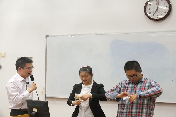 本次讲座共分为三个环节。首先由黄超先生带来的点钞技能指导和打捆方法演示,期间,工作人员将练功钞和捆带分发到学生手中,使得每一位观众都充分参与到了点钞打捆的互动中来,让同学们都体验到了其中的乐趣。接下来由何琴女士为同学们详细介绍的多种辨别假钞的方式,比如可以通过用肉眼观察水印、光辨油墨、听声音、摸手感等方式辨别。最后陈洁女士以自己的亲身经历生动形象地向大家讲述了有关金融防诈骗相关知识。期间风趣幽默又不失专业特色的讲演方式,博得同学们的阵阵掌声。