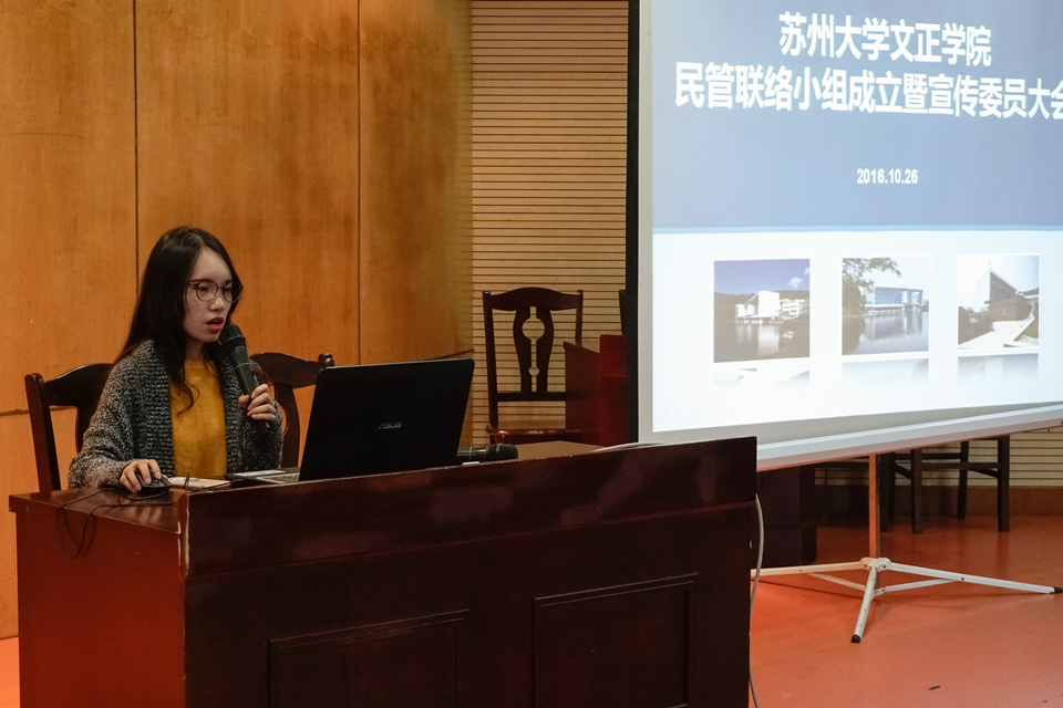 会议伊始,院学生会民主管理委员会负责人蒋佳怡同学对我院新的民主管理委员会工作体系、角色定位、民管联络小组职责进行汇报,并结合食堂卫生检查、失物招领、物业交流、院方走访、学生招待会等民管常规、重点工作进行了概述。