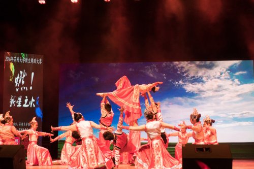 本次新生舞蹈大赛以“燃!新星之火”为主题,每支参赛队伍都选用具有院系特色风格的舞蹈来展示不同的新星风采。我院带来的舞蹈——《二十岁的天空》以独一无二的草原风情令人眼前一亮。
