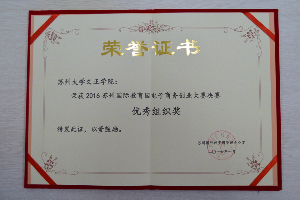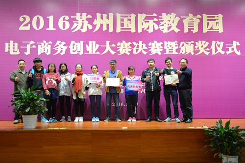10月29日上午,由苏州市国际教育园管理办公室、苏州国际教育园众创联盟主办,苏州经贸职业技术学院承办的2016苏州国际教育电子商务创业大赛决赛暨颁奖仪式在苏州经贸职业技术学院成功举行。经过激烈的角逐,共有七所院校的的10个优秀项目晋级到此次决赛。我院大学生创业项目——“苏州领域通讯设备有限公司”荣获大赛三等奖,我院喜获“优秀组织奖”。