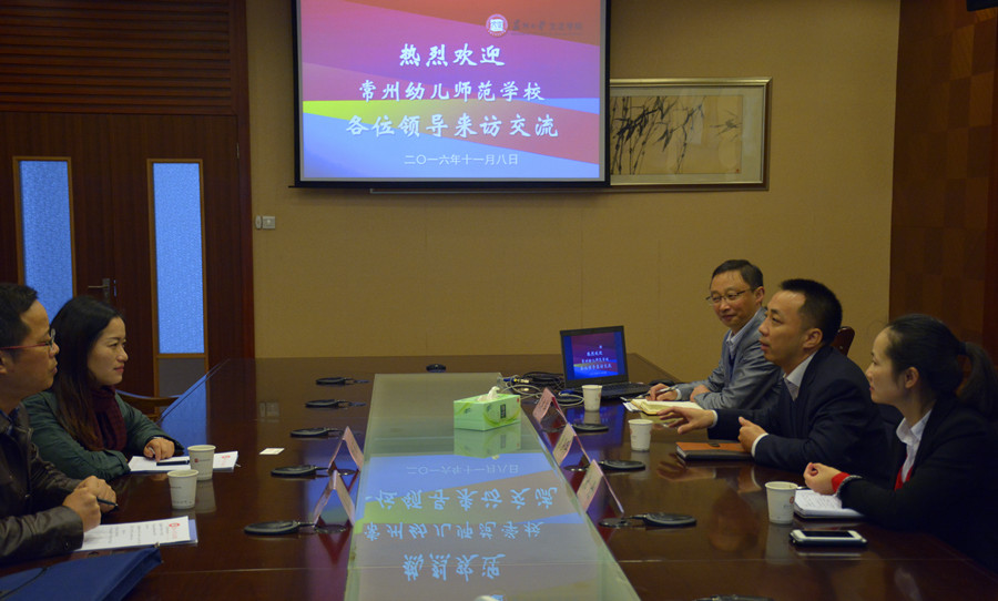 11月8日上午,常州幼儿师范学校副校长杨丽萍、党政办主任张庆华来我院调研专转本招生情况,院党委副书记、副院长袁昌兵、招生就业处副处长(主持工作)宋丹、副处长周建军参加座谈,双方在学生活动中心204室交流研讨。