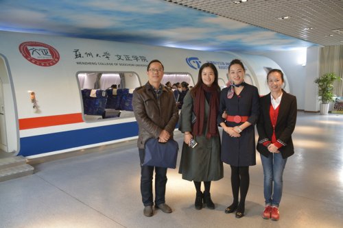杨丽萍对我院这些年在本科生培养和空乘专业建设方面的成就给予高度肯定,并表达出合作意向。会后,常州幼儿师范学校的领导参观了学院艺术楼、空乘专业教室等。