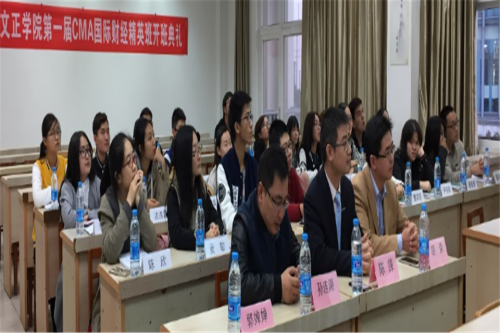开班典礼上,教务处处长胡荣首先致辞,介绍了我院开设CMA精英班的目的意义,解读了CMA国际财经精英班的学分互认制度及奖学金制度,期望同学们努力学习、立志成才,顺利圆满地完成学习任务,取得CMA证书。