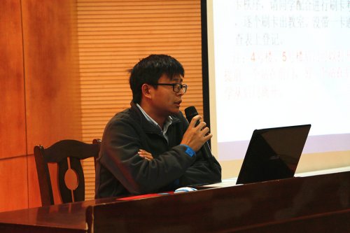 大会首先由院学生会学习部指导老师冯超介绍了学风建设的总体情况,冯超老师强调所有检查同学都要就此次会议内容参加考试。随后,冯超老师对上半学期出现的一些检查问题进行讲解,强调了检查人员的态度、晚自修检查人员的出勤、检查人员的提议和工作范围等相关问题。