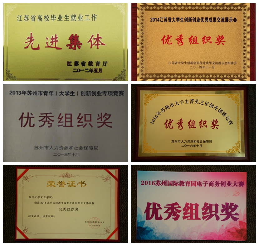 我院就业创业指导工作站自2011年3月6日建站以来,按照苏州市就业创业总体工作部署,紧紧围绕学院中心工作,以“创新创意推进创业,创业带动就业”为总体思路,紧扣就业、创业和职业生涯规划的中心工作开展教育、指导和服务。五年来,共开展创业模拟实训班12期,近千名大学生参加培训并取得合格证。每学期开设SYB选修课程,共培训学生近800人次。大学生创意创业园孵化了六期共63个创业项目。组织在园项目参加各级各类创新创业比赛和展示活动,获得了“江苏省优秀创业项目”、江苏省大学生创新创业优秀成果交流展示会“最具潜力创业项目”、“创青春”江苏省大学生创业大赛银奖、苏州市“汇思杯”学生菁英之星创业创新大赛三等奖等荣誉,学院也因为创新创业工作组织得力,多次获得优秀组织奖。