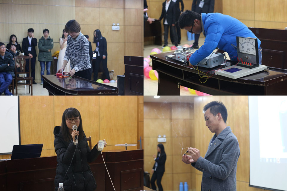 最终,2014级机械工程专业颜嘉雯的“纸杯系列实验”、2015级电子信息科学与技术专业范子琦的“电子炮——电流磁效应”征服了各位评委,荣获一等奖。