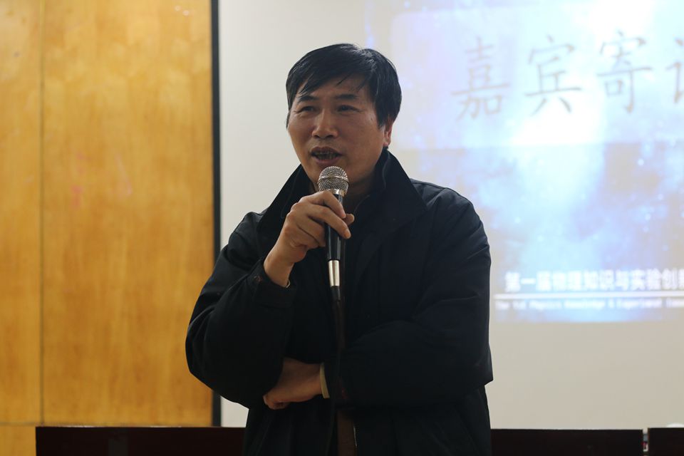 吉成元为本次大赛致辞。他表示:学生活动应该注重理论与实践相结合,提高学生的实践应用能力。物理知识与创新实验技能大赛紧密围绕学院“三创”中心工作,注重学生创新创意能力培养。他对各位评委老师及工作人员的辛勤付出表示感谢,并预祝大赛取得圆满成功。