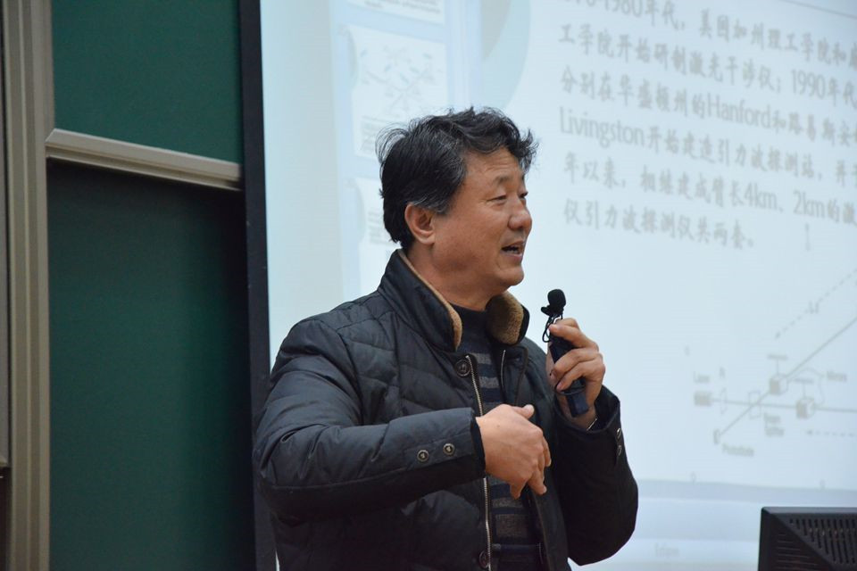 李成金以“引力”为切入点,很快抓住了同学们的好奇心,充分调动了同学们的学习热情,他向同学们介绍了“引力”的诸多研究成果,展示了“引力”的科学魅力。另外,他还结合生动的事例向同学们讲解了广义相对论和狭义相对论的基本内涵。最后,他简要说明了普通物理课程的学习要求和评价方式。