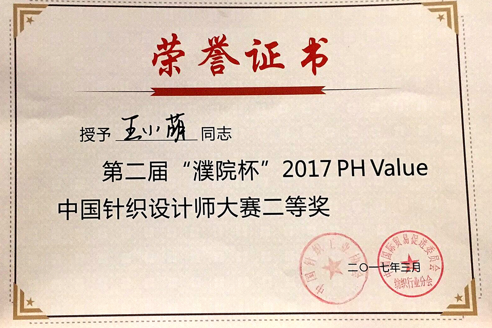 我院王小萌在2017PH Value中国针织设计师大赛中喜获佳绩