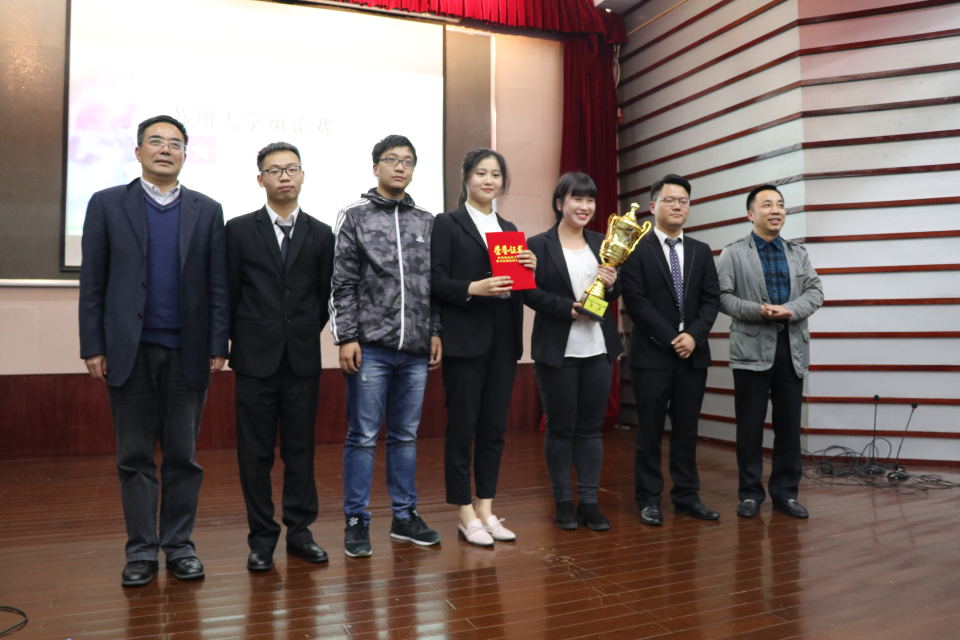 在接下来的闭幕式暨颁奖典礼上,江作军充分肯定了本次辩论赛的意义,希望同学们不仅要在研究辩题时有鲜明的立场,更要在日常生活学习中多思考,多明辨,鼓励同学们形成良好的思辨精神,并为获得冠军的我院代表队颁发了奖杯和荣誉证书。