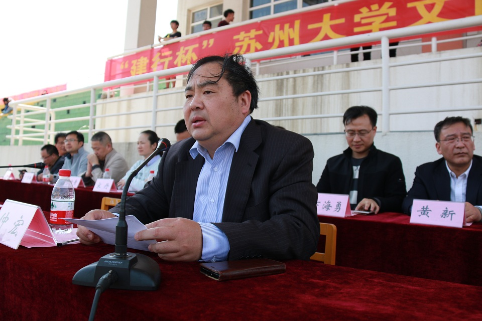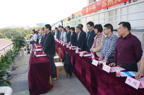 (李幼优/  沈聿嘉、许宏奇/图)414日下午至15日,“建行杯”苏州大学文正学院第十七届田径运动会在田径场如期举行。学院领导及各部门负责人出席开幕式并在主席台就坐,党委书记仲宏致开幕词,裁判员代表谷一悦以及运动员代表朱卫周分别代表裁判员、运动员宣誓。开幕式由党委副书记、副院长袁昌兵主持。