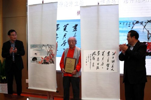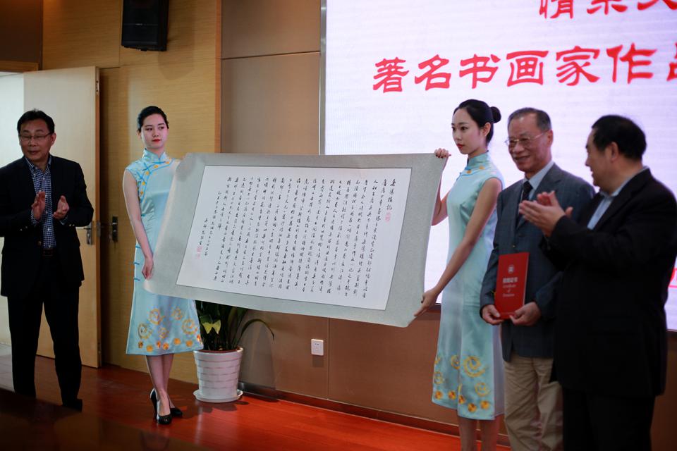 4月16日上午,“情系文正”著名书画家作品捐赠仪式在我院综合楼举行。张继馨先生等著名书画家以及范敬中先生等范仲淹后人向我院无偿捐赠了一批珍贵书画作品。捐赠仪式由我院党委副书记、副院长袁昌兵主持。