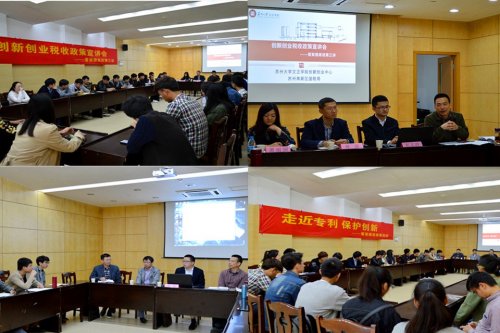苏州高新区国家税务局综合科副科长蒋波,政策法规科业务主办萧丽丽,广州三环专利代理有限公司苏州分公司副总经理、原国家知识产权局审查员肖丁,我院科研竞赛服务中心主任吉成元,学生发展中心主任王淼以及创新创业中心指导老师袁艳参加了此次活动。