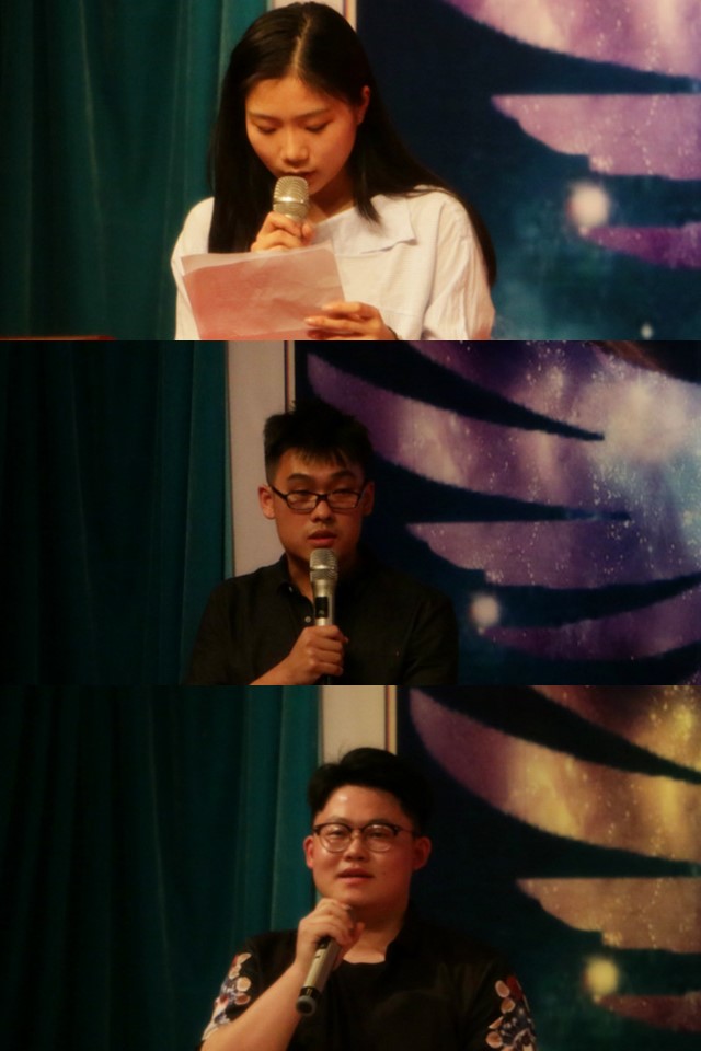 盛江阴、任方、姬予欣分别代表先进个人、先进集体和先进项目发言,他们均表示感谢学院和同学们对志愿服务工作的重视和关心,将一如既往的投身于志愿服务的浪潮中,也呼吁更多同学加入他们的行列。