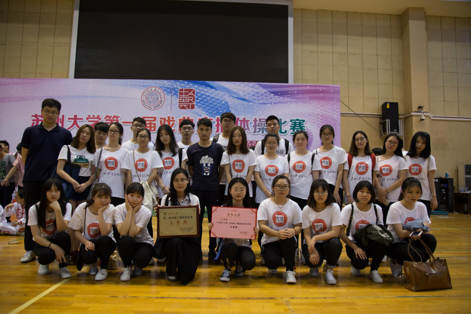(宋玥儿/文 李文婕/图)2017年5月13日,由苏州大学体育运动委员会和艺术教育中心联合主办的第一届戏曲广播体操比赛在苏州大学东校区体育馆落下帷幕,我院学生代表队在本次比赛中荣获三等奖。