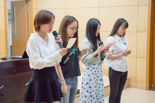 比赛期间,同学们朗诵情感丰富、精神饱满,具有很强的感染力;朗诵作品内容积极健康向上,具有深刻的内涵。朗诵形式包括课文诵读、情景对话等,体现了很高的水平。经过评委打分,最终16英语顾玉、王静怡团队,16英语吴嘉欣,16英语杜杨杨获得前三名。