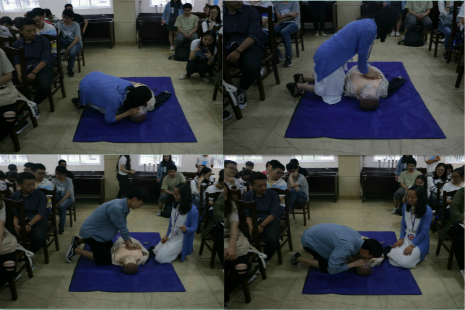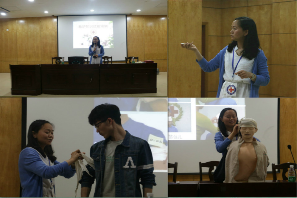 此次培训围绕生活中常见的突发事故应如何进行救援展开。鲁娟以发生在我们身边的鲜活事例,向在场学员强调了应急救护“黄金4分钟”的重要性。随后利用图文展示,向大家详细讲解心肺复苏CPR的救援程序,以及止血、包扎、固定、搬运四项创伤急救技术。为加深大家对急救措施的了解,鲁娟现场展开急救流程模拟演练并展示了几种常见创伤的包扎手法。现场同学也在救护师指导下积极参与模拟操作。