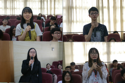 三位骨干校友发言结束后,活动进入自由提问环节。校友关系所带来的亲切感使得听众们争相举手发问,而三位校友们的精彩解答,也极大地激发了同学们的求知欲。有人提出自己身为学生干部,且同时兼有一份家教工作,而学习上又想要拿奖学金,问该如何平衡学业与工作之间的关系。作为过来人的校友以一句“人生有舍才有得,什么都想要的人到最后可能什么都得不到”为其敲响警钟。