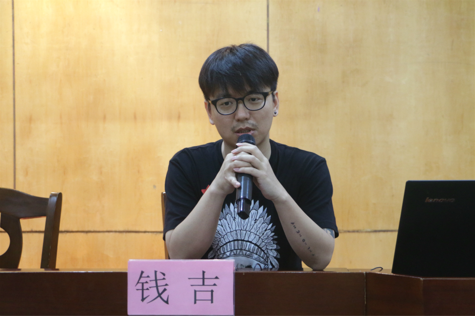 曾任院学生会文娱部部长的钱吉上台发言。他从“团队”、“突破”、“积累”、“细节”和“成熟”这五个方面入手分析,并指出每个人都应该形成独立思想和独立人格,不要轻易被外界所影响,“不以物喜,不以己悲”。大学生们应该坚持走自己想要的道路,勇敢地面向未来。