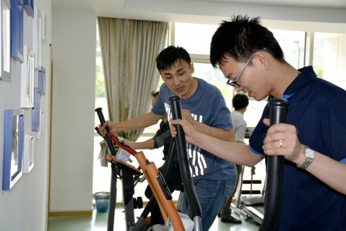 教工之家的各项硬件配套都体现着人性化的理念。借助校园信息化的优势,门禁系统直接刷教工卡即可进出,免去了钥匙借还的不便;室内专门配套淋浴区,便于大家在运动后及时清洁衣身、洗去疲惫。