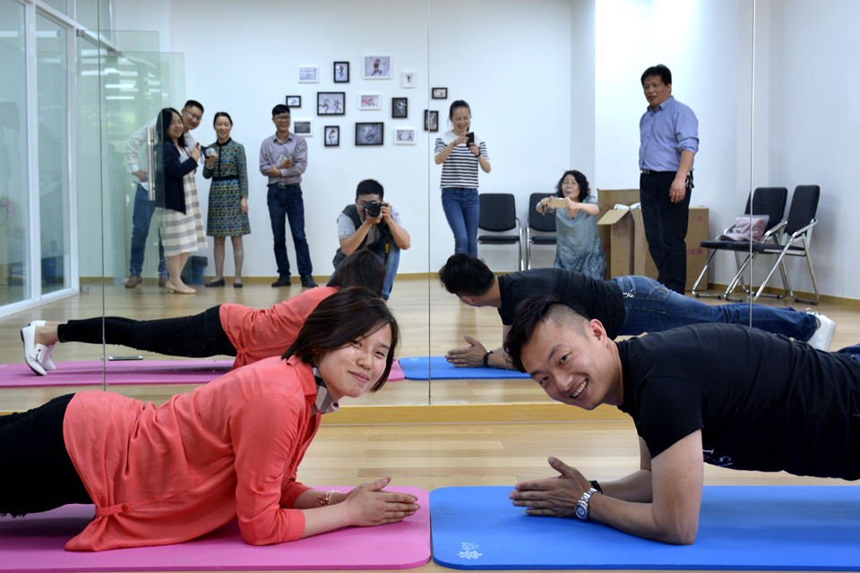 学院教工之家位于综合楼124室,室内面积约200平方米。筹划准备阶段,院工会广泛征求教工意见,乒乓区、健身区、瑜伽区不同的功能区域划分,充分考虑了不同年龄段男、女教工的需求。甫一开张,即得到教工们的喜爱,大家纷纷在自己有兴趣的器材上试用交流。