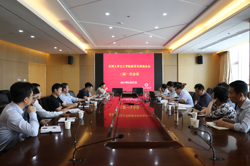 随后,新一届理事、监事参加了院教育发展基金会二届一次会议。会议审议了本基金会2016年度工作报告、2016年基金会财务状况汇报、2017年度经费预算方案和基金会2017年度向苏州大学文正学院进行公益性捐赠的报告。