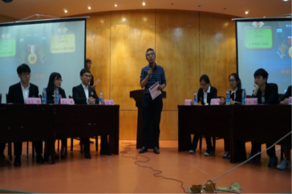 决赛由辩论社社长徐卓彬、辩论社副社长袁妮、辩论社前副社长傅思三名同学担任评委。我院计算机工程系系主任凌兴宏、计算机工程系专业老师张建、学生处团学指导老师迮宇受邀出席。