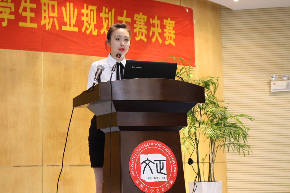 (王美子 徐志权/文 袁梦/图)6月7日下午3:20,苏州大学文正学院2017年大学生职业规划大赛决赛在学生活动中心201顺利举行。苏州大学教育学院心理系副教授吴铁钧、国家二级就业指导师、苏州大学文正学院学生发展中心主任王淼、国家二级心理咨询师、苏州大学文正学院招生就业处副处长(主持工作)宋丹担任本次大赛的评委。