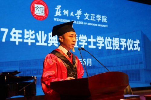 袁昌兵在发言中表示,同学们在文正度过了一段激情飞扬的青春岁月,学习本领、增长才干、砥砺品格、收获情谊,也为文正学院的建设与发展作出了难忘的贡献。