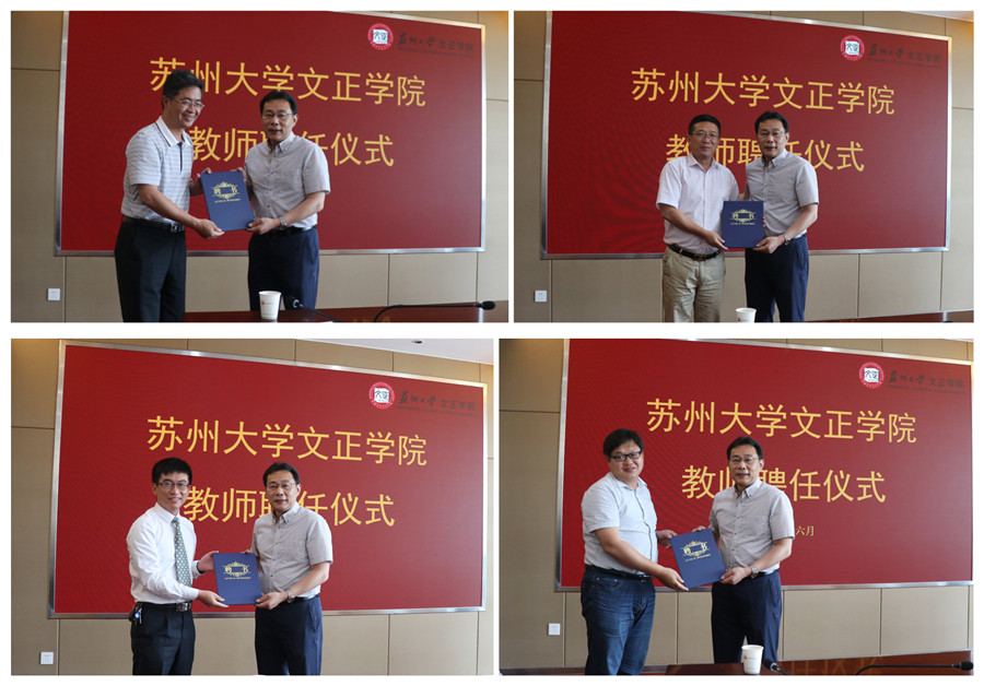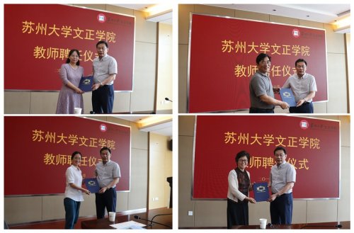6月21日下午,学院自有教师(苏大借用)聘任仪式在综合楼会议室举行,共有十五位苏州大学教师以“双聘”方式加入文正大家庭。苏州大学人事处副处长何德超作为嘉宾出席本次聘任仪式。文正学院领导班子、各职能部门负责人、相关系主任以及本次受聘的自有教师共同参加仪式。